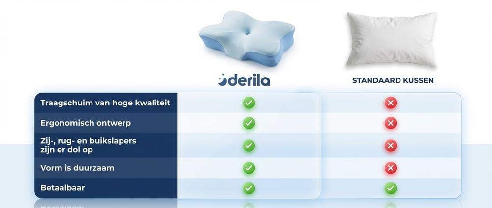 Bestel je Derila Ergo kussen vandaag nog en ontvang het direct aan je deur. Binnenkort slaap je als een baby en laat je het ongemak van je oude kussen achter je.